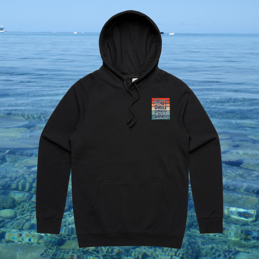 Salty Moist hoodie - front (stripes)
