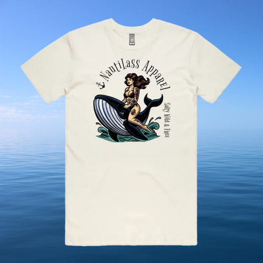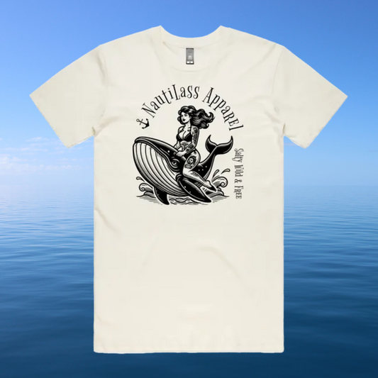 Make waves with this bold mermaid-and-whale tee — salty, wild and unapologetically free.