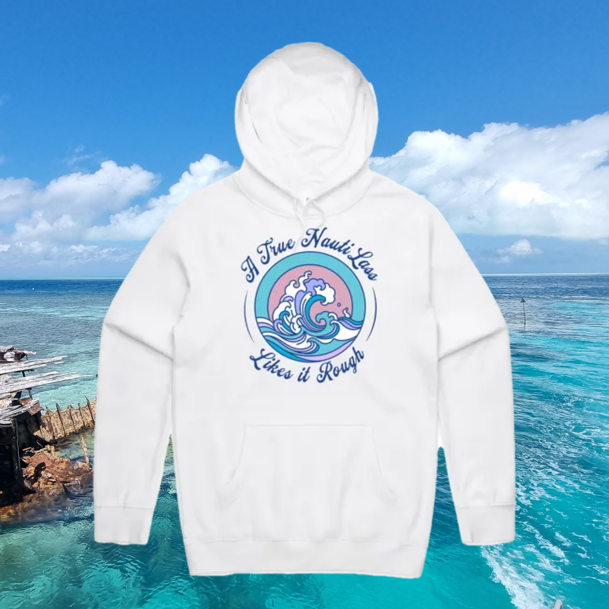 Ride the waves with attitude! Our “A True Nauti Lass Likes It Rough” design blends playful pastel surf art with that iconic NautiLass cheek. Perfect for anyone who laughs in the face of a little chop, or who just likes her seas rough....